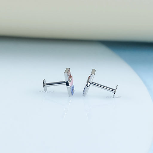 Round Lab Diamond Enamel Snapchat Earrings For Kids