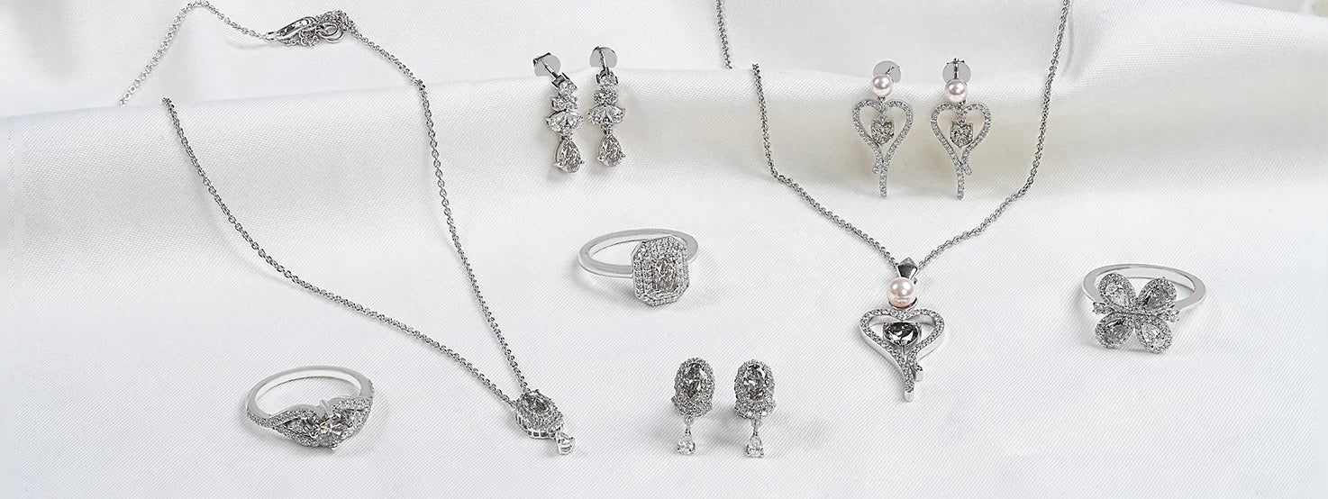 Adorn yourself with sparkling diamond jewelry, including intricately crafted necklaces and elegant earrings. Each piece is designed to add sophistication and timeless charm to your collection, perfect for any occasion.