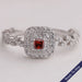 Bague en diamant rouge taille princesse avec double halo