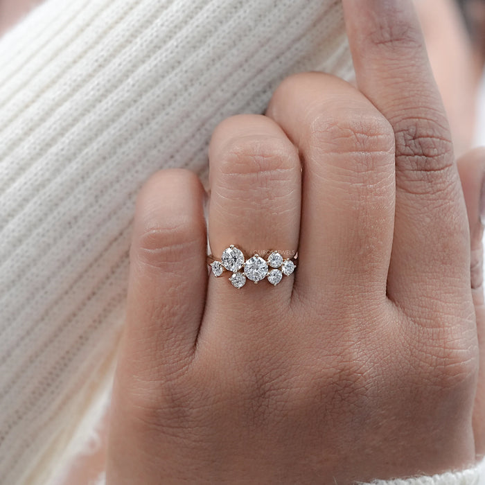 Round Lab Diamond Cluster Dainty Wedding Ring
